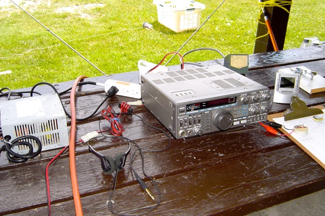 私の家より南に約30km離れた指定された公園に、12時半ころ行き、ピクニックテーブルにQRP局をセットしました。コンディションは20mバンドの方が良かったので、自作のポケットバーチカルを上げ、TS-430Vをパワー5Wに設定しCW運用の準備を整えました。あいにく、コンディションは悪く、UTC18:00から 20:30まで運用しましたが、QSO出来た局はわずか、4局だけ(W5QEP,N0MA,NA4K,W0BM)でした。