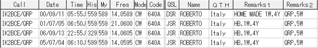 【図1】 IK2BCE/QRPper、Robertoさんとの交信記録