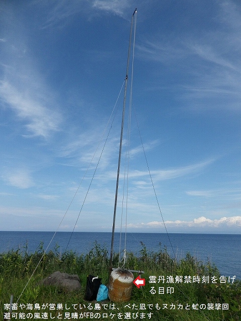 今回の海鳥の営巣地で有名な天売島はヌカカがいます。焼尻島は肉用種の羊を放牧し、島中央部には低木の森林地帯と湿地があることで虻とヌカカが繁殖しています。もし、この吸血昆虫の対策無しに島に入りアウトドア打電をやったら大変な目にあいます。